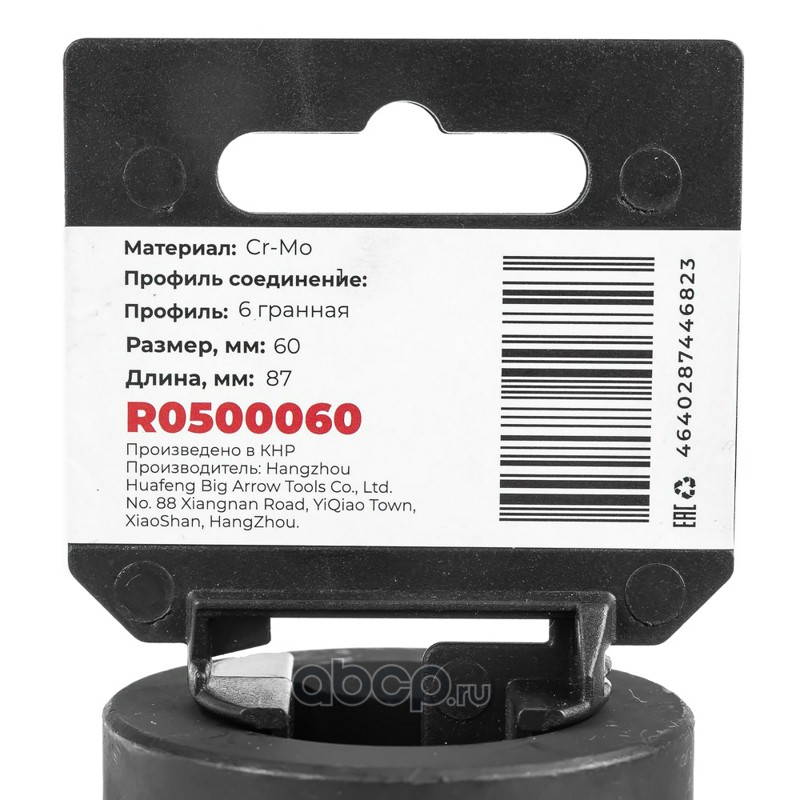 ARNEZI R0500060 Головка ударная 1""DR 6-гр. 60 мм Cr-Mo, на холдере