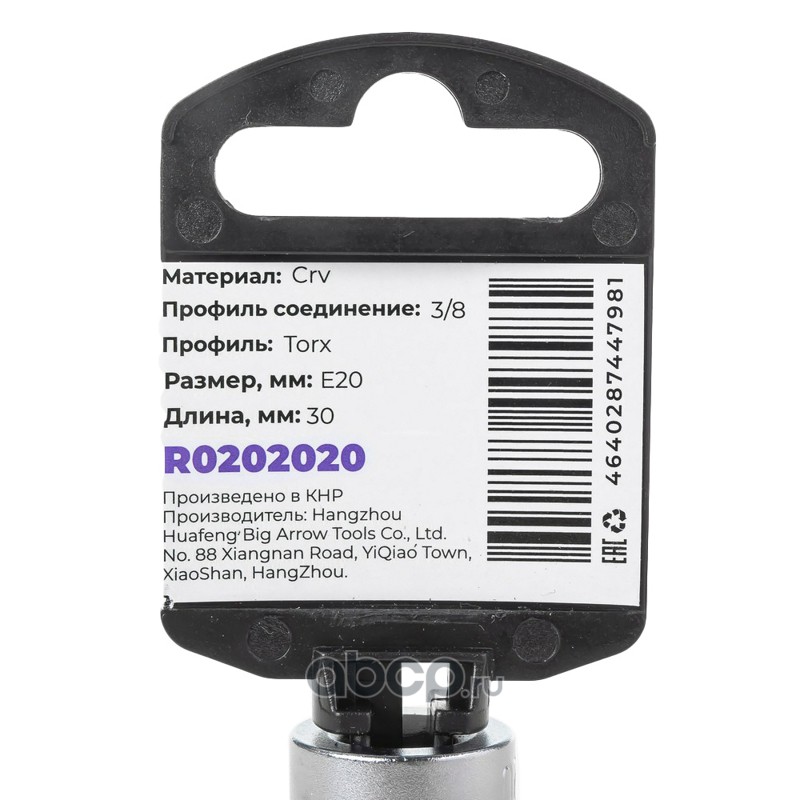 |  | ARNEZI | R0202020 | Головка 3/8" внешний TORX Е20, L=30 мм на холдере |  |