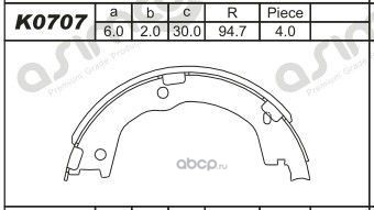 | ASIMCO | K0707 | Комплект тормозных колодок, стояночная тормозная система | ||