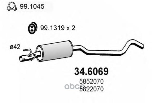 | ASSO | 346069 | Средний глушитель выхлопных газов | ||