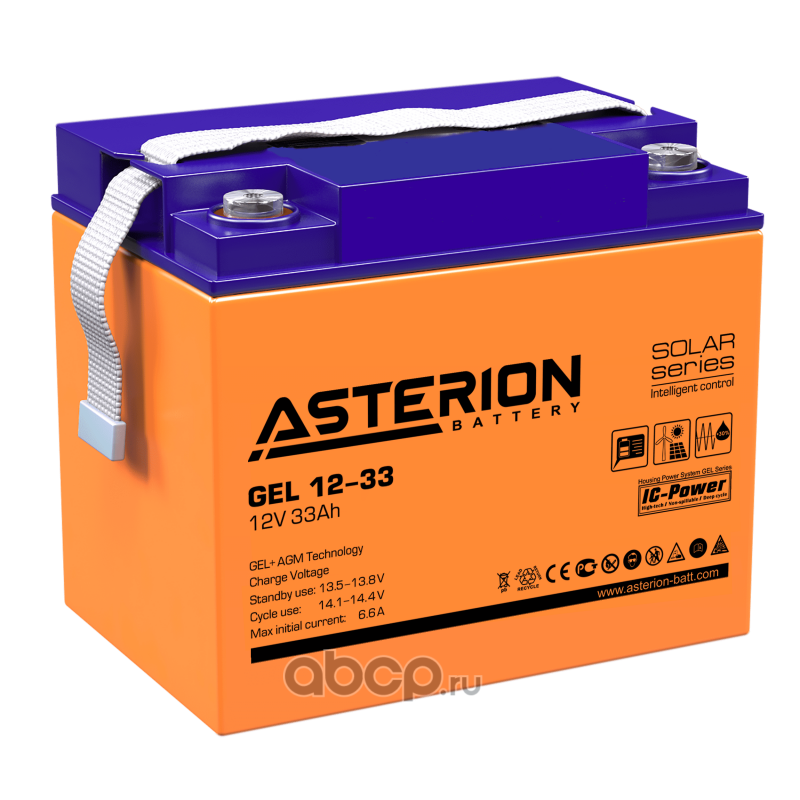 | ASTERION BATTERY | GEL1233 | Батарея аккумуляторная 33А/ч прямая полярн. болтовые мото клеммы |