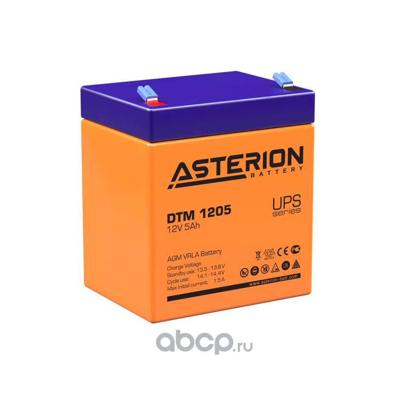 | ASTERION BATTERY | DTM1205 | Батарея аккумуляторная 5А/ч обратная полярн. F1 (под клемму 187) клеммы | ||