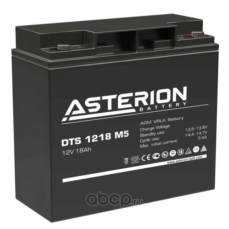 | ASTERION BATTERY | DTS1218M5 | Батарея аккумуляторная 18А/ч обратная полярн. болтовые мото клеммы | ||