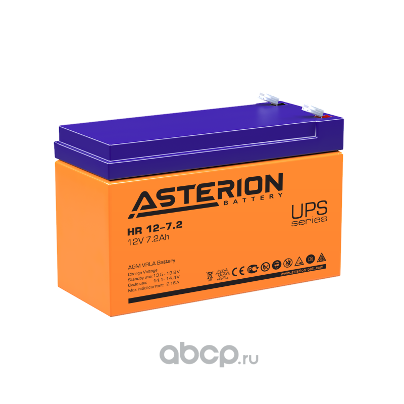 | ASTERION BATTERY | HR1272 | Батарея аккумуляторная 7.2А/ч прямая полярн. F2 (под клемму 250) клеммы | ||