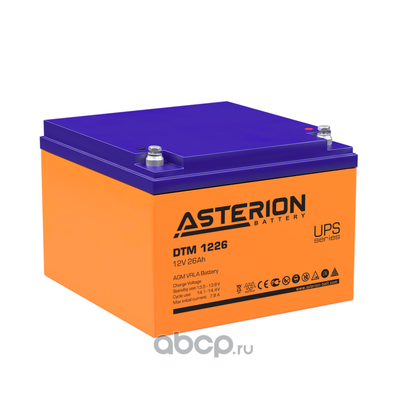 | ASTERION BATTERY | DTM1226 | Батарея аккумуляторная 26А/ч прямая полярн. болтовые мото клеммы | ||