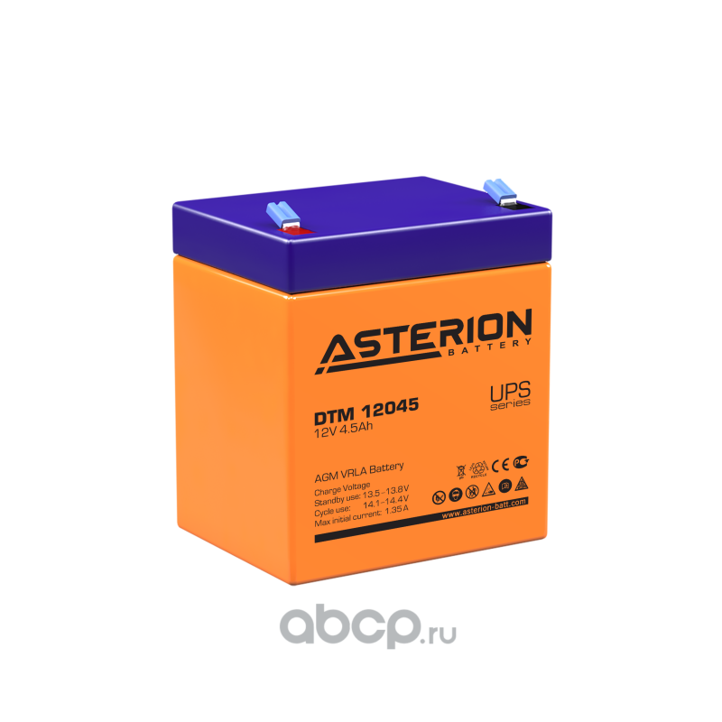 | ASTERION BATTERY | DTM12045 | Батарея аккумуляторная 4.5А/ч прямая полярн. F1 (под клемму 187) клеммы | ||