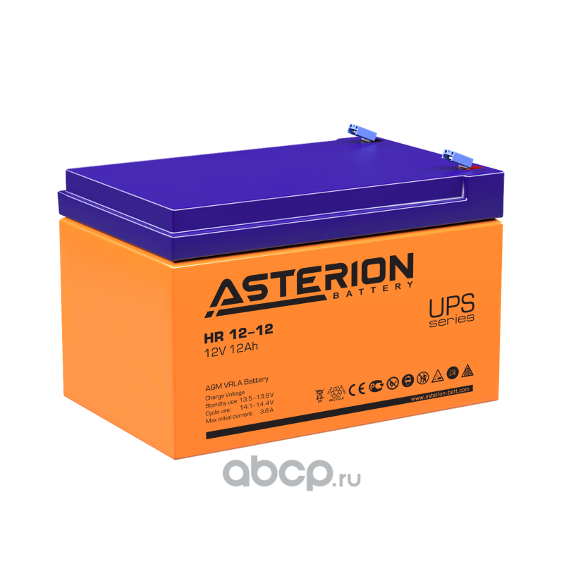 | ASTERION BATTERY | HR1212 | Батарея аккумуляторная 12А/ч прямая полярн. F2 (под клемму 250) клеммы | ||