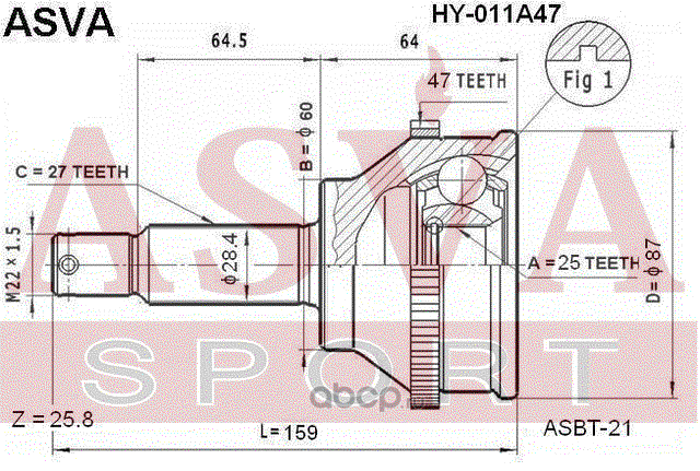 | ASVA | HY011A47 | ШРУС НАРУЖНЫЙ 25X60X27 | ||