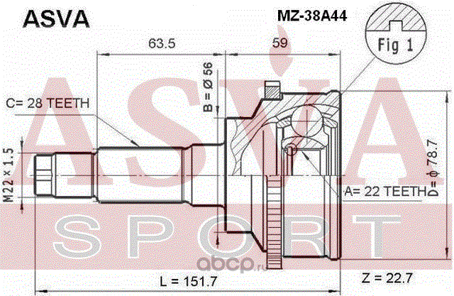 | ASVA | MZ38A44 | ШРУС НАРУЖНЫЙ 22X56X28 | ||