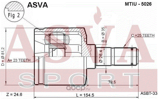 | ASVA | MTIU5026 | ШРУС ВНУТРЕННИЙ 23X35X25 | ||