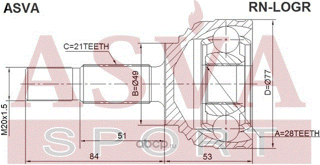 | ASVA | RNLOGR | ШРУС НАРУЖНЫЙ 28X49X21 | ||