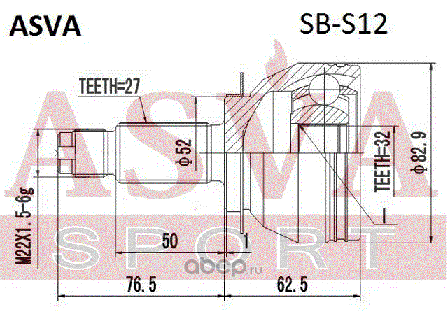 | ASVA | SBS12 | ШРУС НАРУЖНЫЙ 32X52X27 | ||