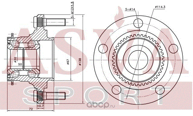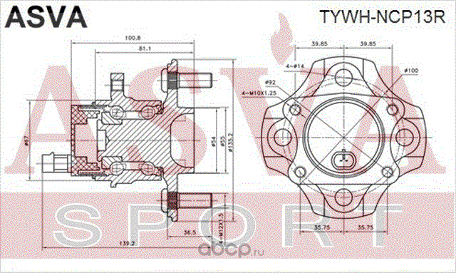 | ASVA | TYWHNCP13R | СТУПИЦА ЗАДНЯЯ С ДАТЧИКОМ АБС | ||