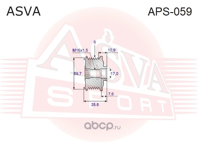 | ASVA | APS059 | ШКИВ ОБГОННЫЙ ГЕНЕРАТОРА | ||