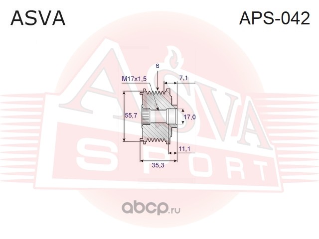 | ASVA | APS057 | ШКИВ ОБГОННЫЙ ГЕНЕРАТОРА | ||