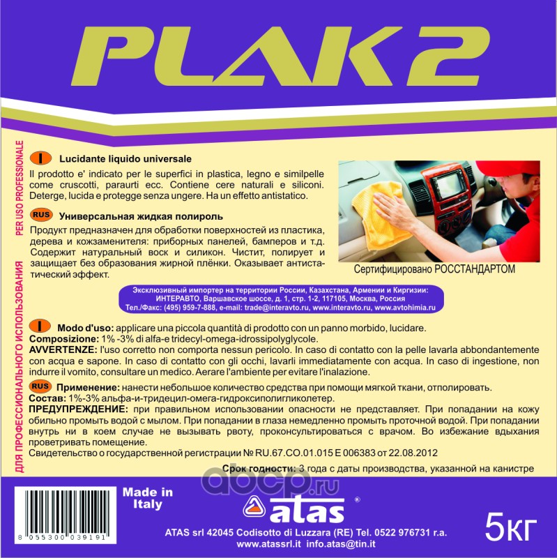 | ATAS | A4592 | Полироль для приборной панели и мебели, с длительным действием и приятным запахом, антистатик | ||