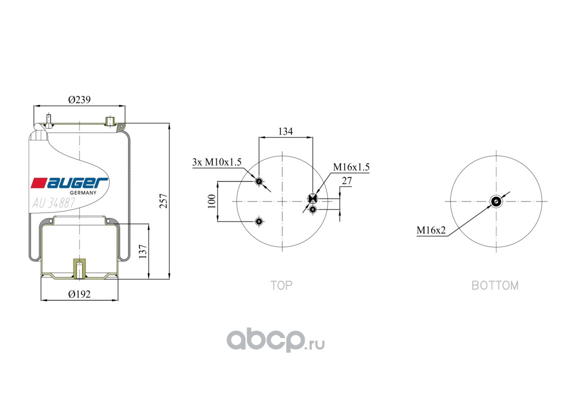 | AUGER | AU34887K | Пневморессора в сборе со стальным стак | ||