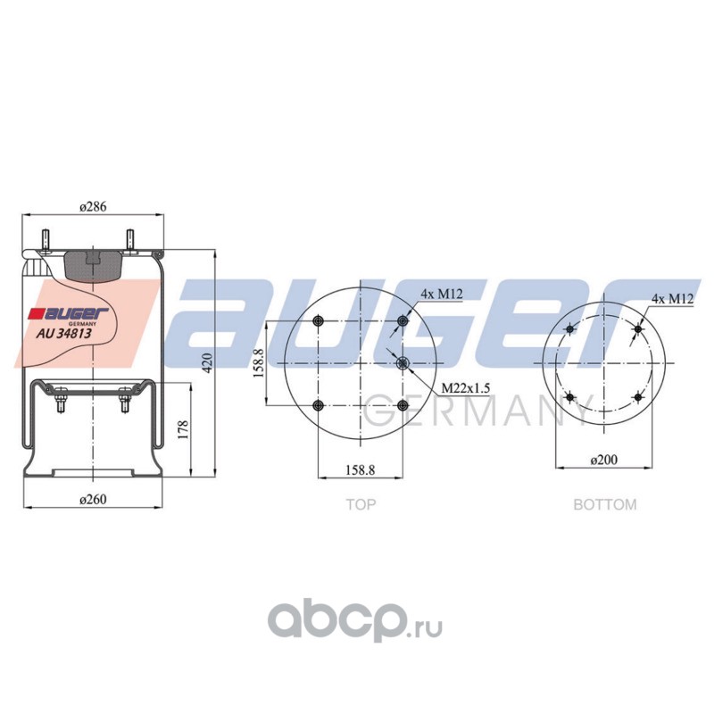 | AUGER | AU34813K | Пневморессора в сборе со стальным стак | ||