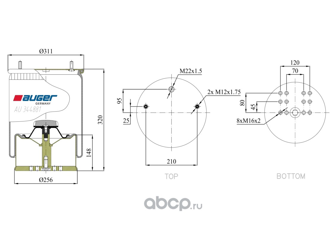 | AUGER | AU344881K | Пневморессора в сборе со стальным стак | ||