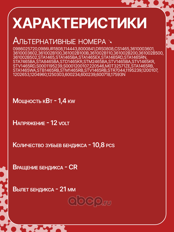 | AUTO UNIT | CS1465 | Стартер восстановленный | ||