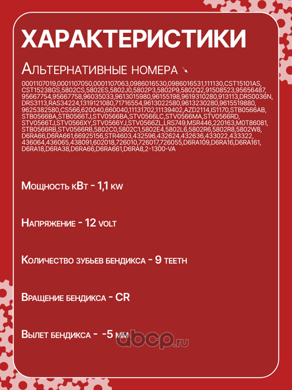 | AUTO UNIT | CS566 | Стартер восстановленный | ||