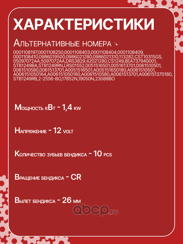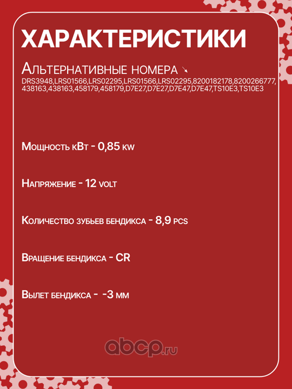 | AUTO UNIT | CS1249 | Стартер восстановленный | ||