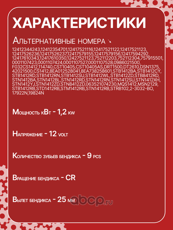 | AUTO UNIT | CS1412 | Стартер восстановленный | ||