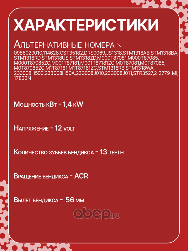 | AUTO UNIT | JS1318 | Стартер восстановленный | ||