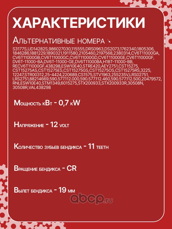 | AUTO UNIT | CS1575 | Стартер восстановленный 12V, 1.0kW | ||
