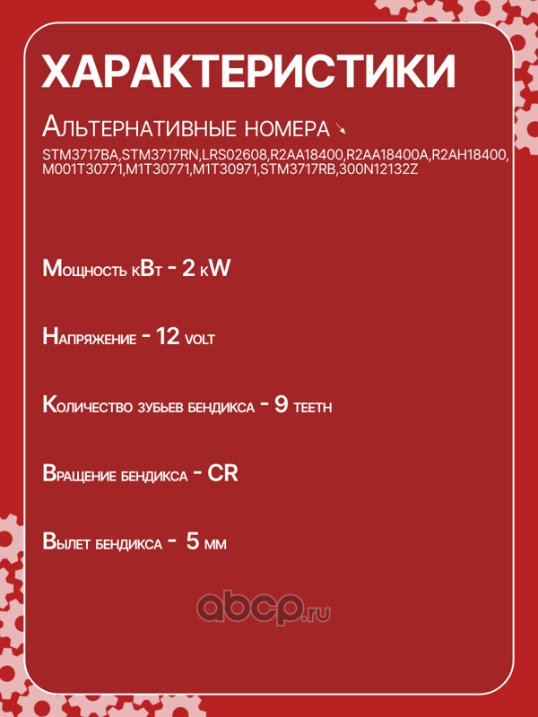 Стартер восстановленный 12V, 1.7kW