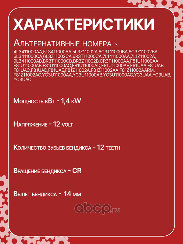 Стартер восстановленный 12V, 1.4kW