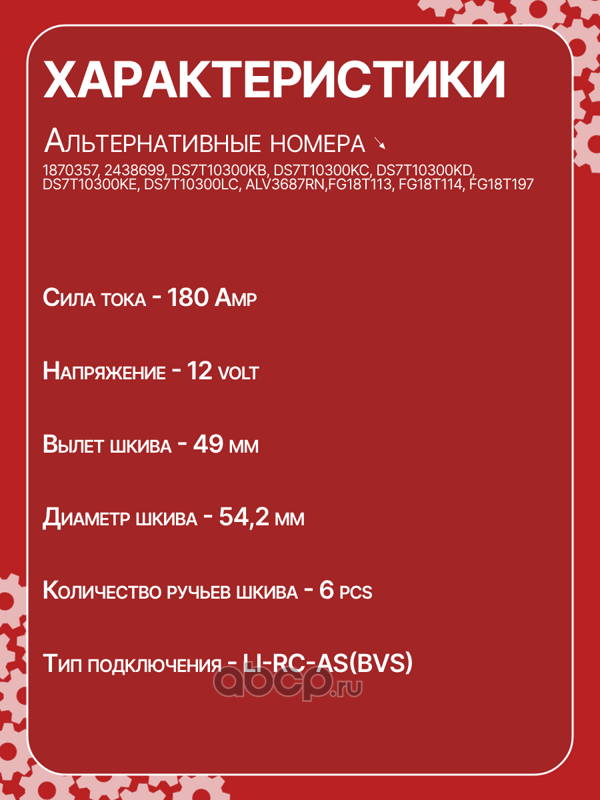 Генератор восстановленный 14V, 180A