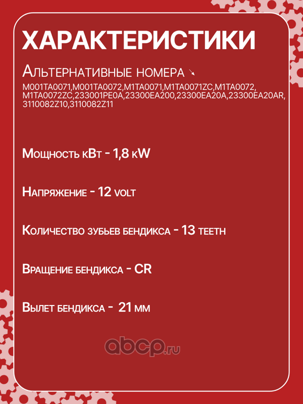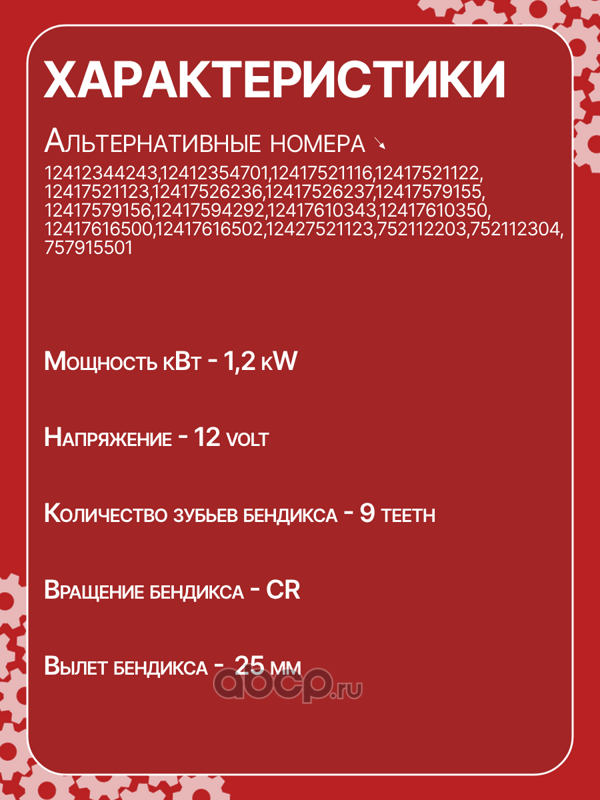Стартер восстановленный 12V, 1.2kW
