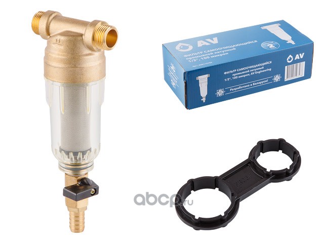 | AV ENGINEERING | AVE115703 | Фильтр самоочищающийся промывной латунный 1/2", 100 микрон (промывной латунный) | ||