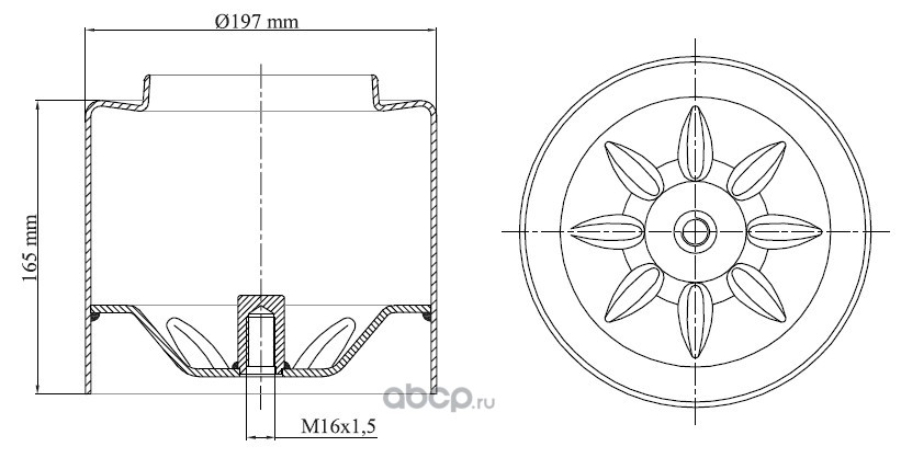 AVLKRAFT 70190616 Основание пневморессоры нижнее 197x165мм