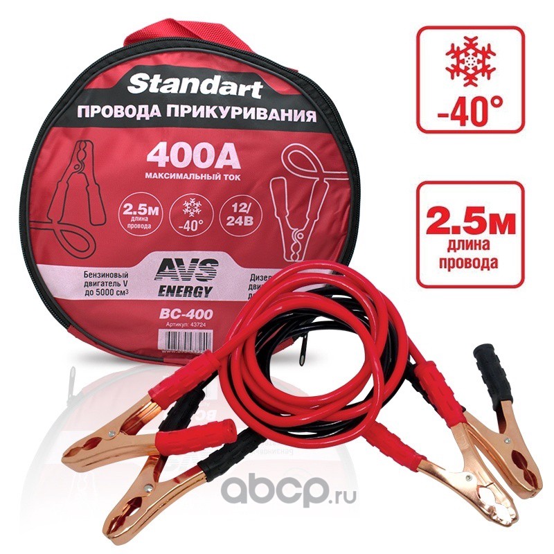 | AVS | 43724 | Провода прикуривания AVS Standart BC-400 (2,5 метра) 400А | ||