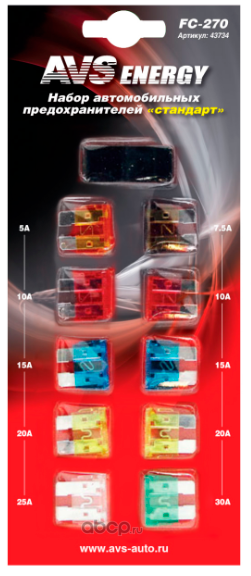 | AVS | 43734 | Набор предохранителей AVS FC-270 "стандарт" в блистере | ||