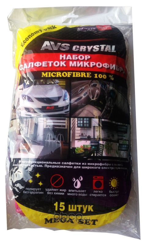 | AVS | MF6119 | Салфетка 30х30 микрофибра AVS MF-6119 (набор из 15 штук) для комплексной очистки | ||
