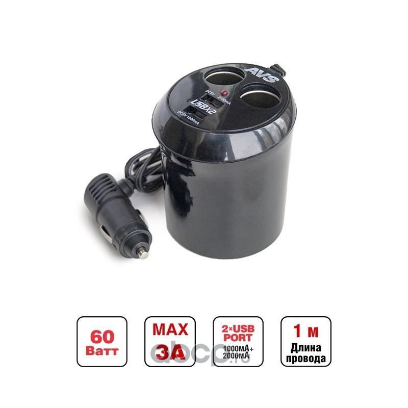 | AVS | A78117S | Разветвитель прикуривателя 12/24V (на 2 выхода + USB) AVS CS214U | ||