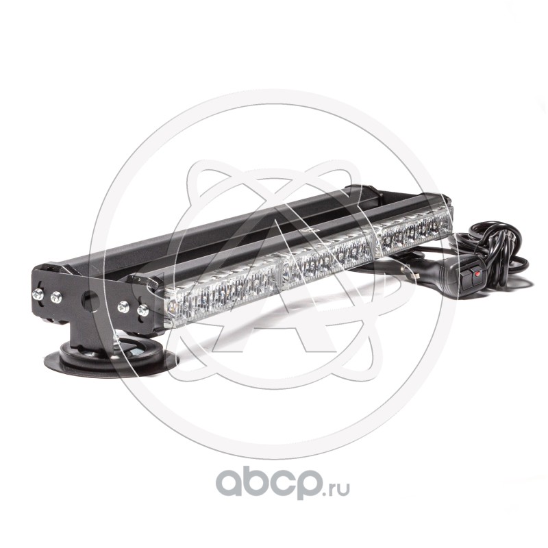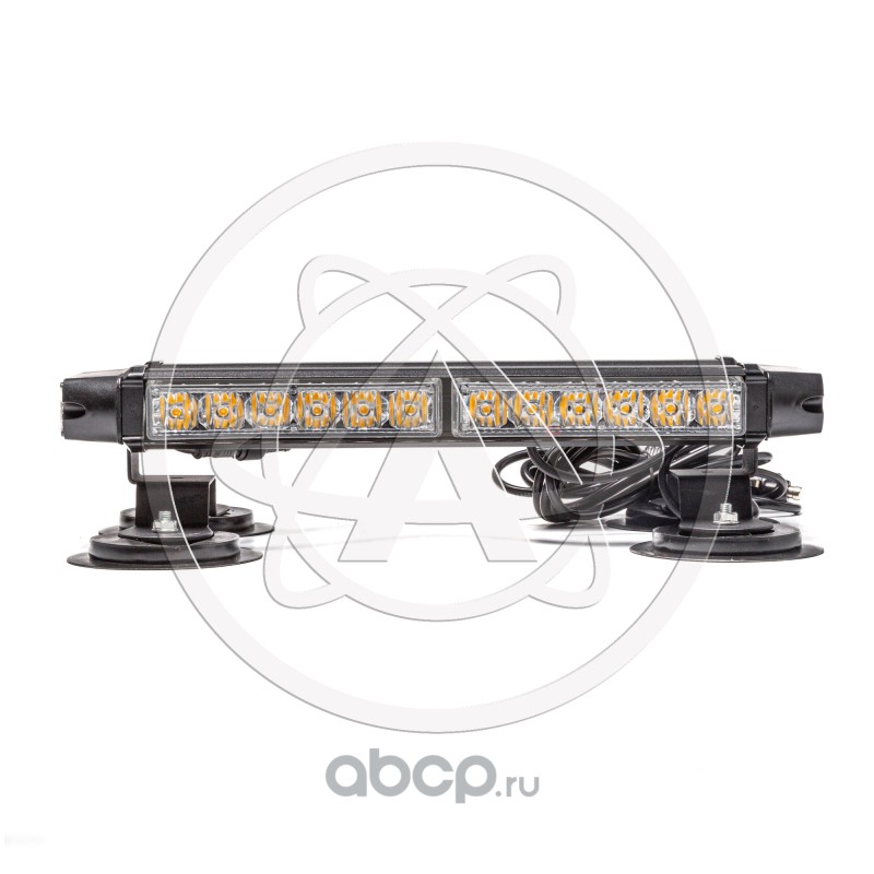 Маяк-стробоскоп 12/24 В, 12 Вт, желтый, 1-стор. (2 блока Epistar), 13 реж., крепление на кронштейне, прикуриватель (провод 3м), 310*40*50 мм