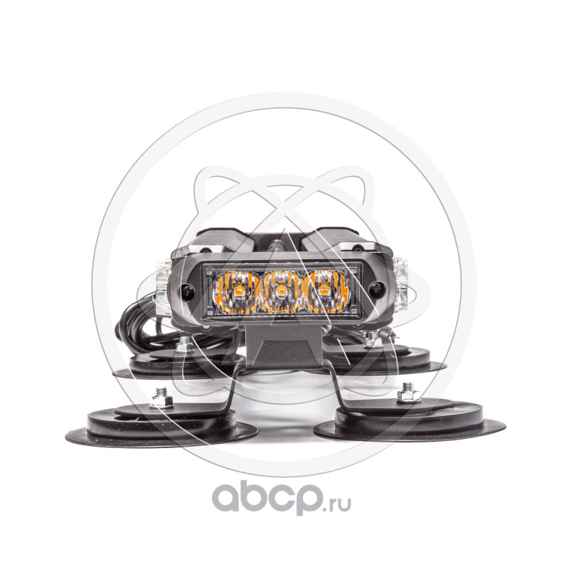Маяк-стробоскоп 12/24 В, 36 Вт, желтый, 2-стор. (3+3 блока Epistar), 18 реж., крепление на магните, прикуриватель (провод 3м), 450*120*78 мм