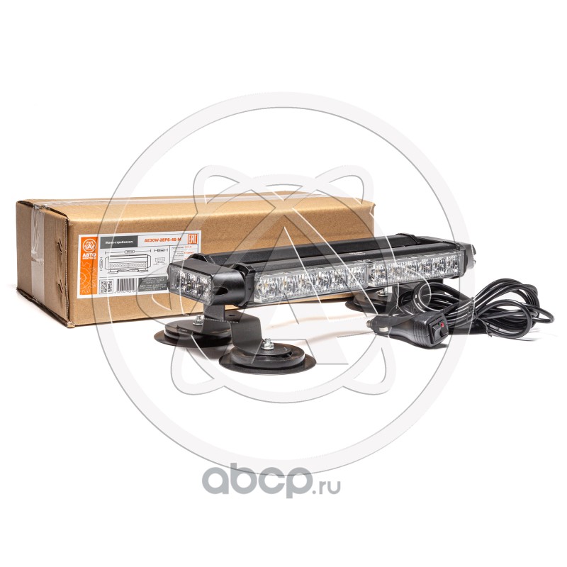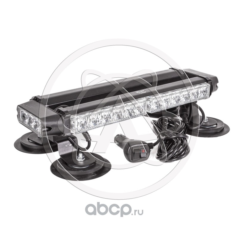 Маяк-стробоскоп 12/24 В, 30 Вт, 4-стор. (2+2+2 блока Epistar), 13 реж., крепление на магните, прикуриватель (провод 3м), 310*120*78 мм