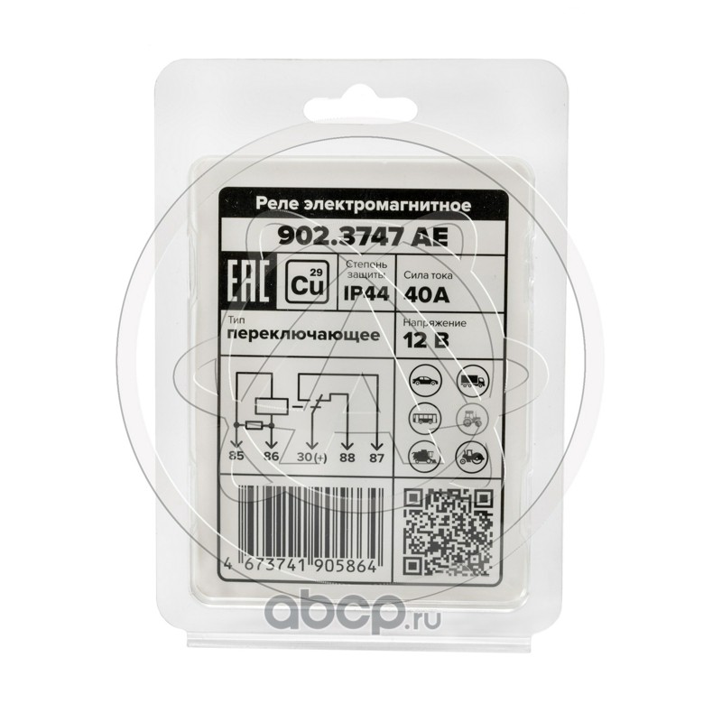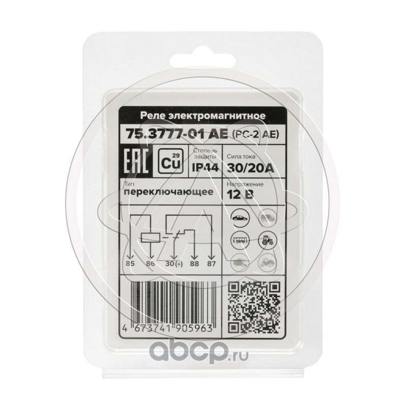 Реле стартера (5-и контактное), ГАЗ, ВАЗ, УАЗ, 12 В, 30/20 А, переключающее, с кронштейном (карман под кронштейн), медные контакты, в блистере