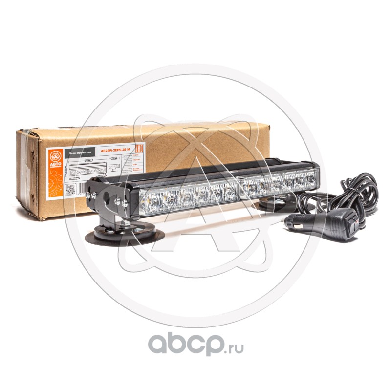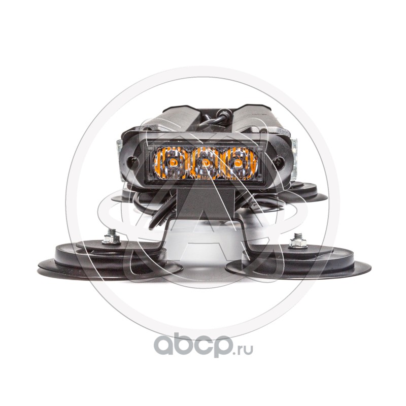 Маяк-стробоскоп 12/24 В, 24 Вт, желтый, 2-стор. (2+2 блока Epistar), 13 реж., крепление на магните, прикуриватель (провод 3м), 310*120*78 мм