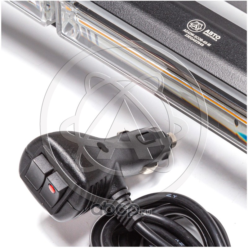Маяк-стробоскоп 12/24 В, 54 Вт, желтый, 4-стор. (4+4+2 блока Epistar), 18 реж., крепление на магните, прикуриватель (провод 3м), 590*120*78 мм