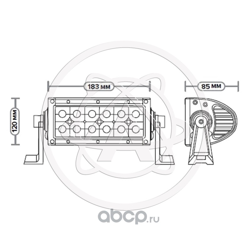 Фара светодиодная дополнительная, балка 183*85*120, направленный свет, 12 диодов, крепление по бокам, 36 Вт, 10-30 В