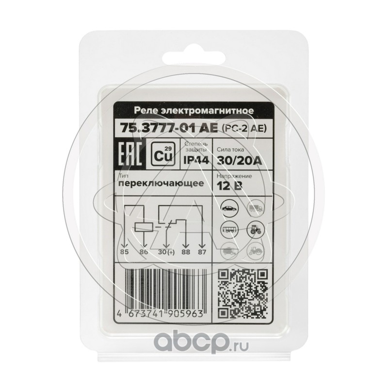 Реле стартера (5-и контактное), ГАЗ, ВАЗ, УАЗ, 12 В, 30/20 А, переключающее, с кронштейном (карман под кронштейн), медные контакты, в блистере