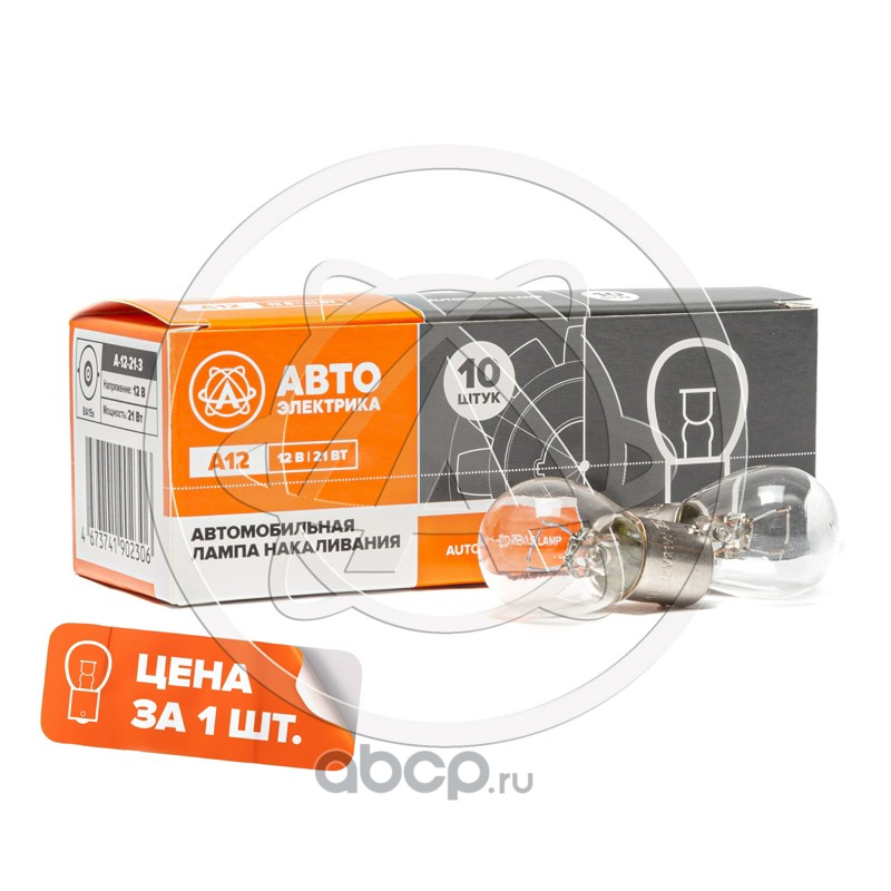 |  | AVTOELECTRICA | А12213BA15S | Автолампа накаливания P21W, 12 В, 21 Вт, BA15S (большая, одноконтактная) |  |