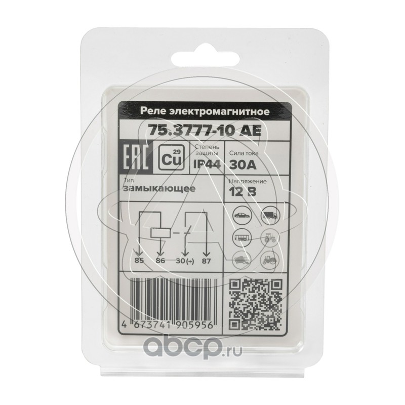 Реле стартера (4-х контактное), ГАЗ, ВАЗ, УАЗ, ПАЗ, 12 В, 30 А, замыкающее, с кронштейном (карман под кронштейн), медные контакты, в блистере
