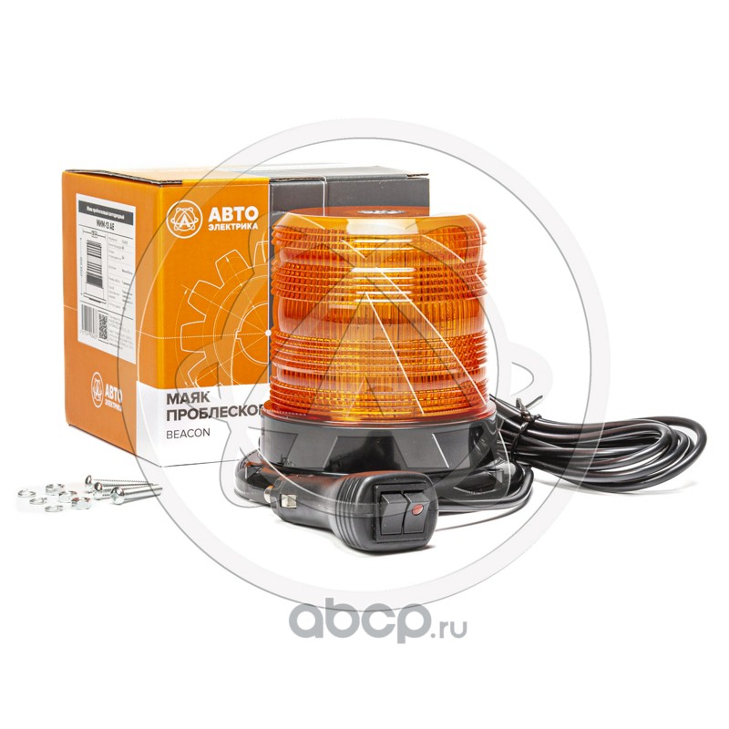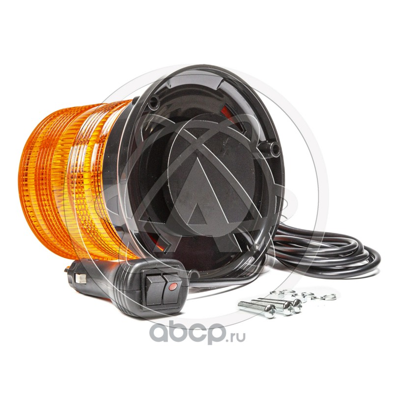 Маяк импульсный 12/24 В, желтый, 60 светодиодов, крепление на болтах/магните, соединение в прикуриватель, 7 режимов работы, переключение с тумблера на прикуривателе, D=128мм H=122мм